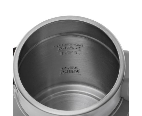 На внутренней стенке чайника имеется метка максимального уровня воды. Подставка с центральным контактом даёт возможность ставить на нее чайник в любом положении, обеспечивая вращение на 360°. Нагревательный элемент у данной модели чайника скрытый и находится в дне. Сверху он закрыт пластиной из нержавеющей стали, которая защищает его от накипи, облегчает уход за ним и снижает шум при нагревании воды.