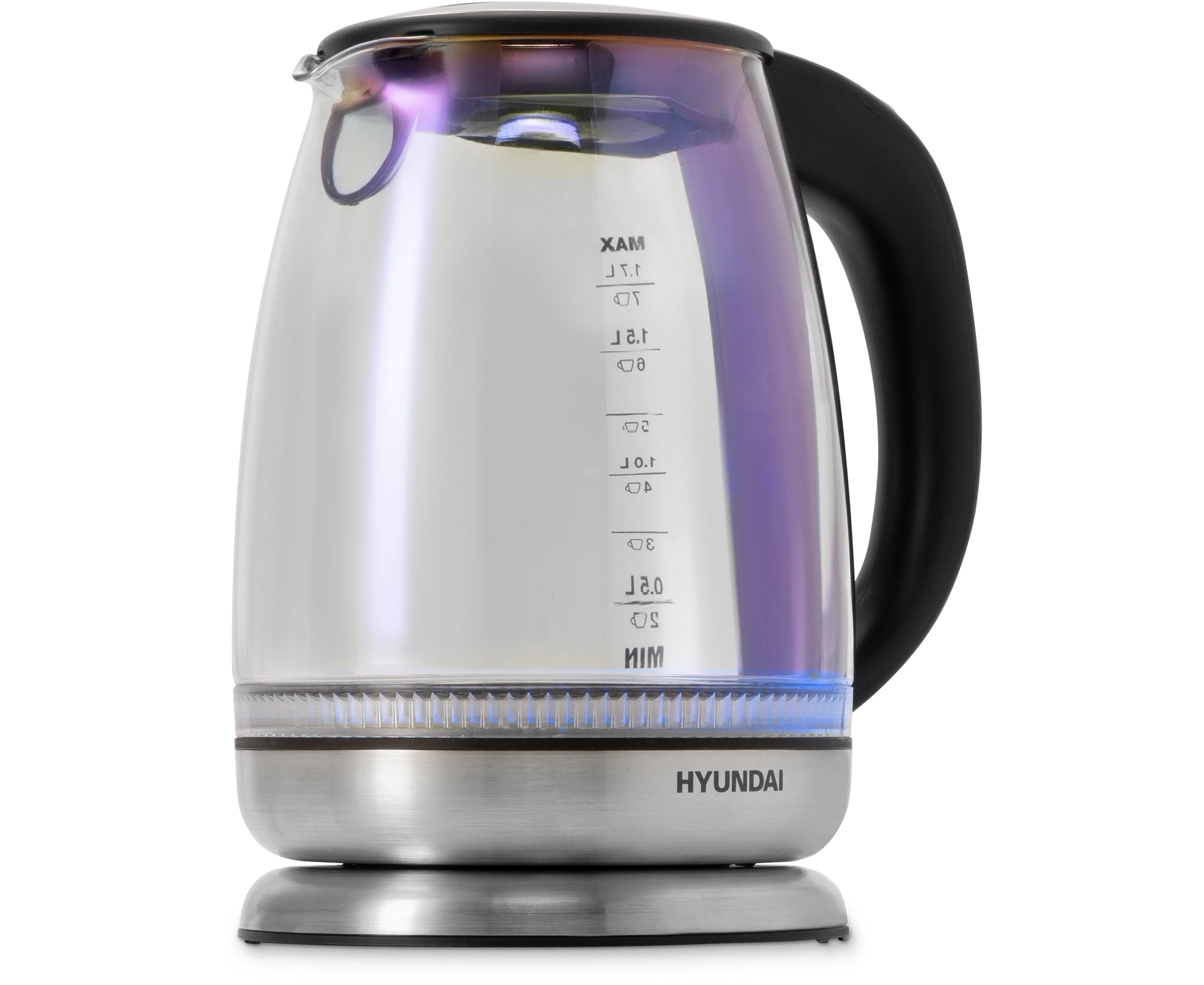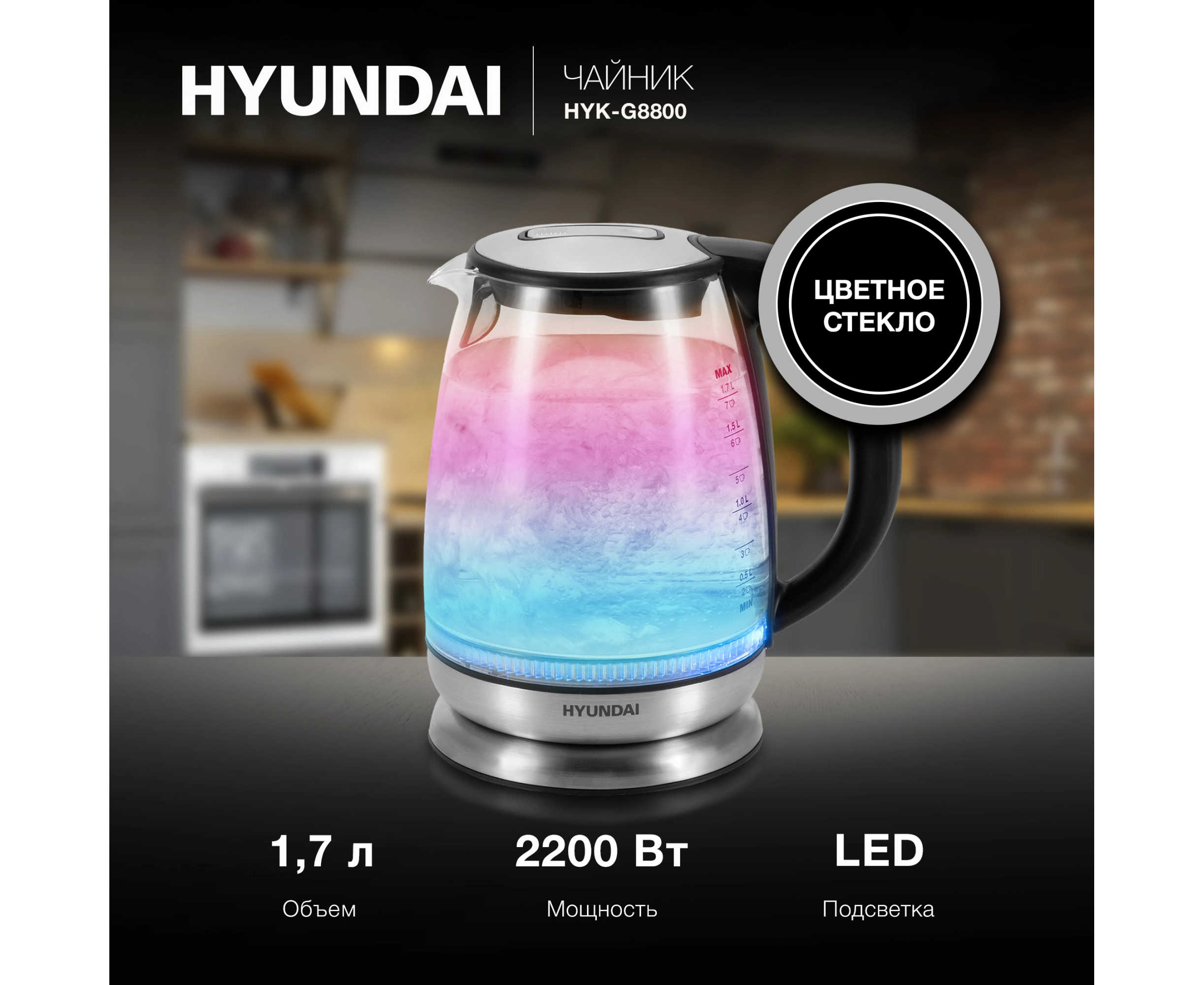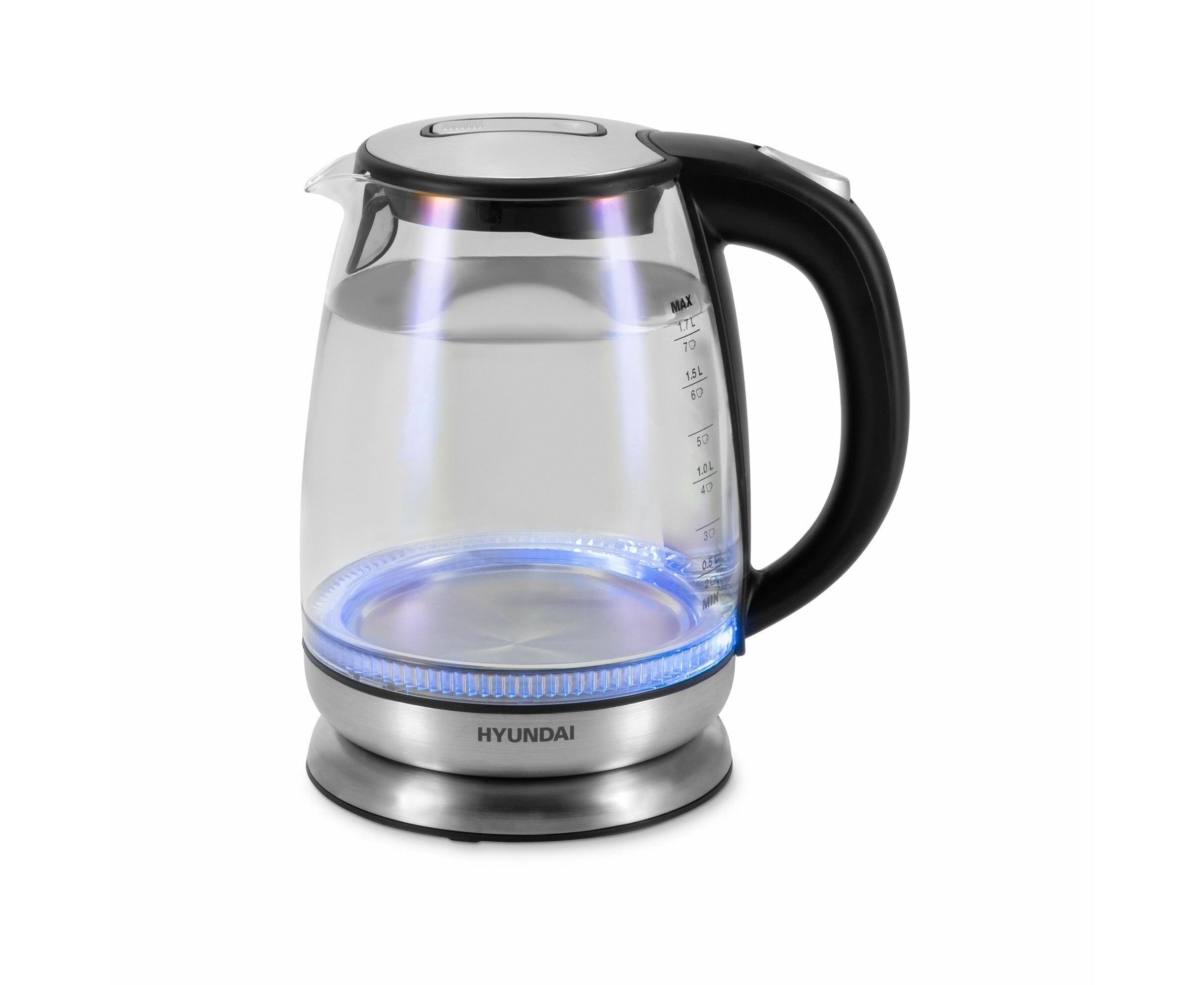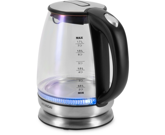 Электрочайник Hyundai HYK-G8800, 2200Вт, черный и серебристый