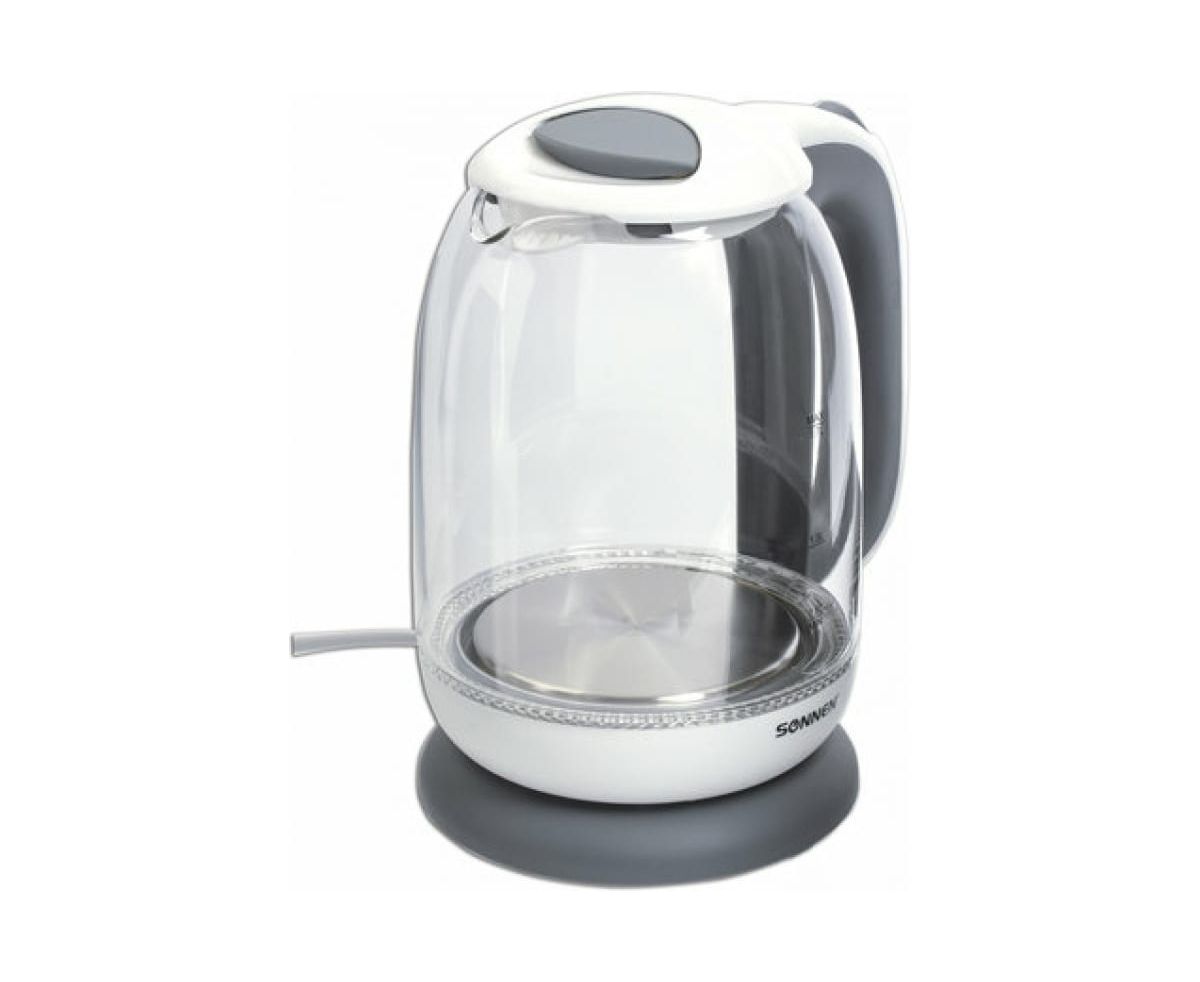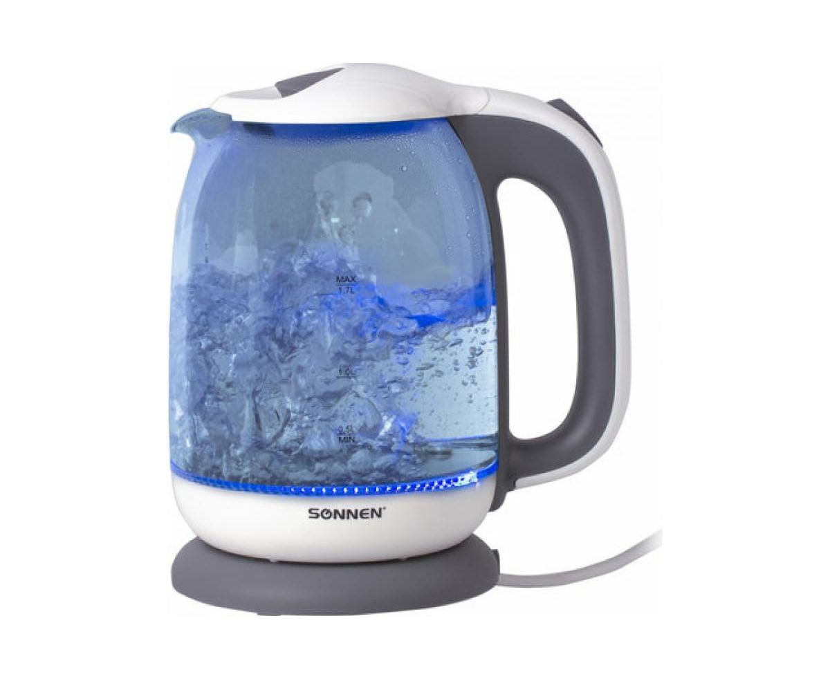 Электрочайник SONNEN KT-1792, 1,7л, 2200 Вт, закрытый нагревательный элемент, стекло, белый, подсветка, 454348
