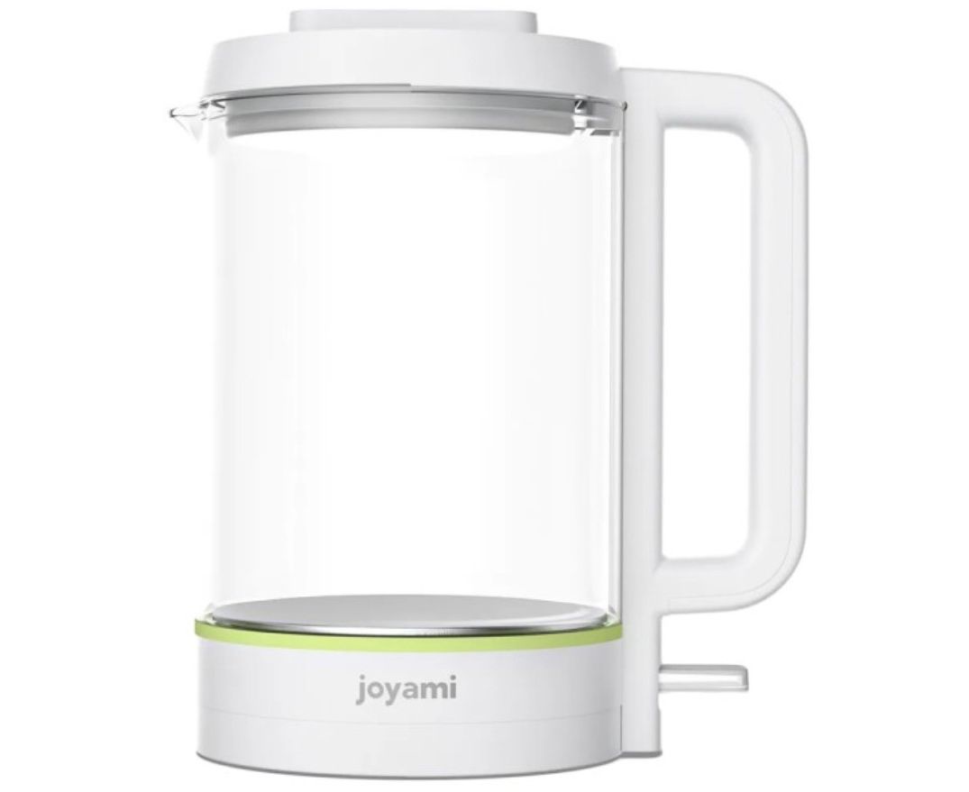 Чайник Joyami Electric Kettle 1,5л JDS010 EU электрочайник с объемом 1,5 литра. Корпус чайника изготовлен из 100% боросиликатного стекла, что обеспечивает безопасность и сохраняет качество воды. Дополнительная безопасность обеспечивается материалом из пищевой нержавеющей стали 304. Чайник быстро нагревает воду благодаря мощности 1500 Вт и автоматически отключается при вскипании. Крышка полностью съемная, а широкое горлышко и удобная ручка обеспечивают простую и удобную чистку и использование. Также чайник оснащен LED-подсветкой кнопки и имеет удобную систему сматывания кабеля в подставке. Можно просто наслаждаться удобством и красотой современных технологий.