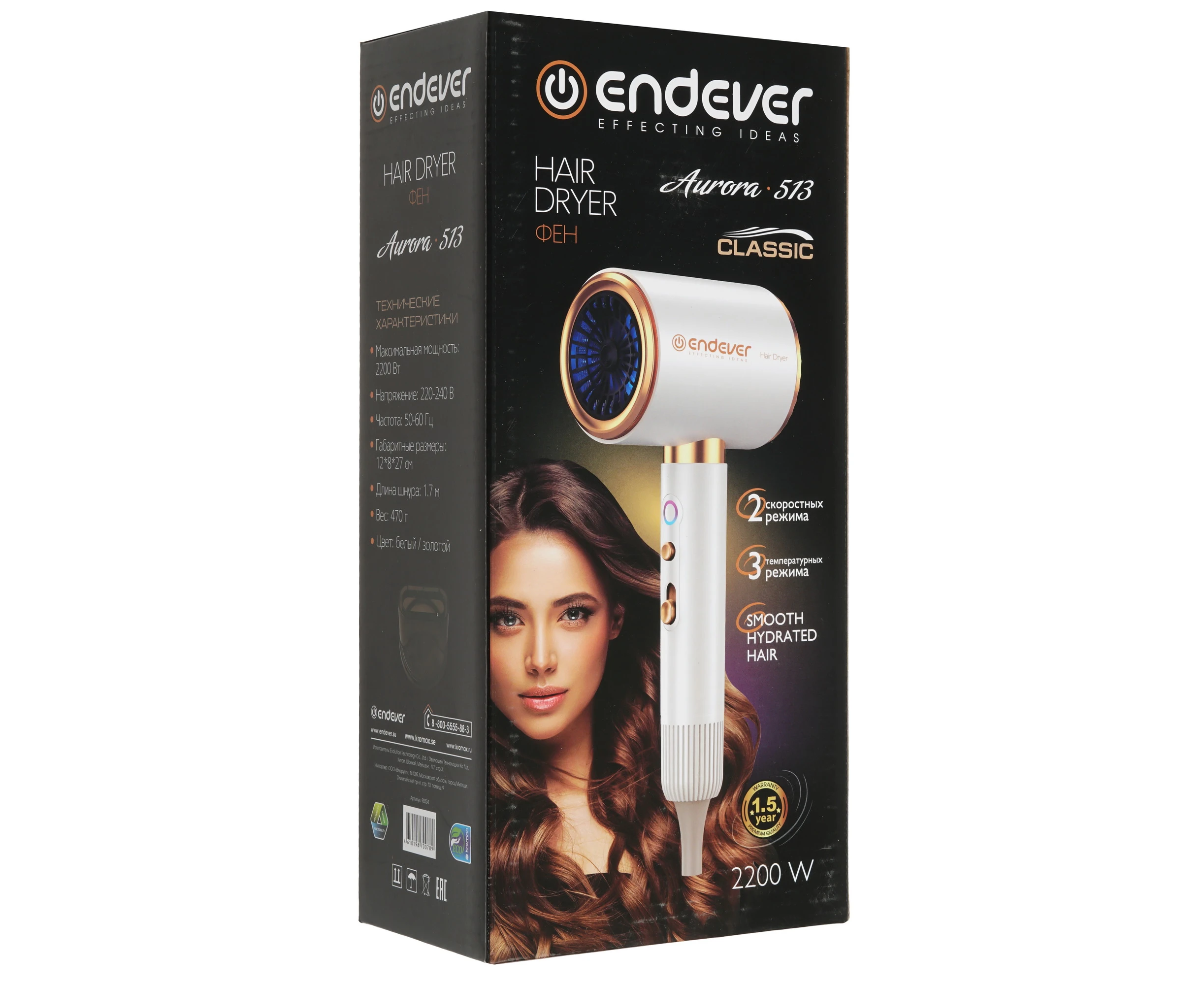 Фен Endever Aurora-513 белый/золотой