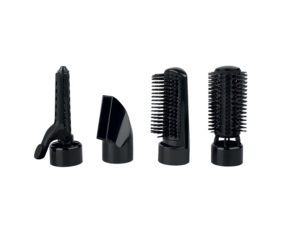 Мощность устройства – 800 Вт, ее достаточно для быстрой сушки и укладки. Набор из 4 насадок открывает вам широкий выбор укладок: сопло для сушки, полукруглая насадка, брашинг для объема, насадка для создания локонов. Ионизированный поток воздуха - генерируемый турмалиновым покрытием решетки, закрепленной на отверстии выхода горячего воздуха, нейтрализует статическое электричество, волосы становятся еще более гладкими, мягкими и блестящими.