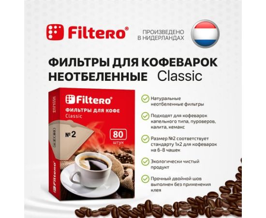 Фильтры для кофе Filtero №2 бумажные, 80шт, (№2/80) коричневый