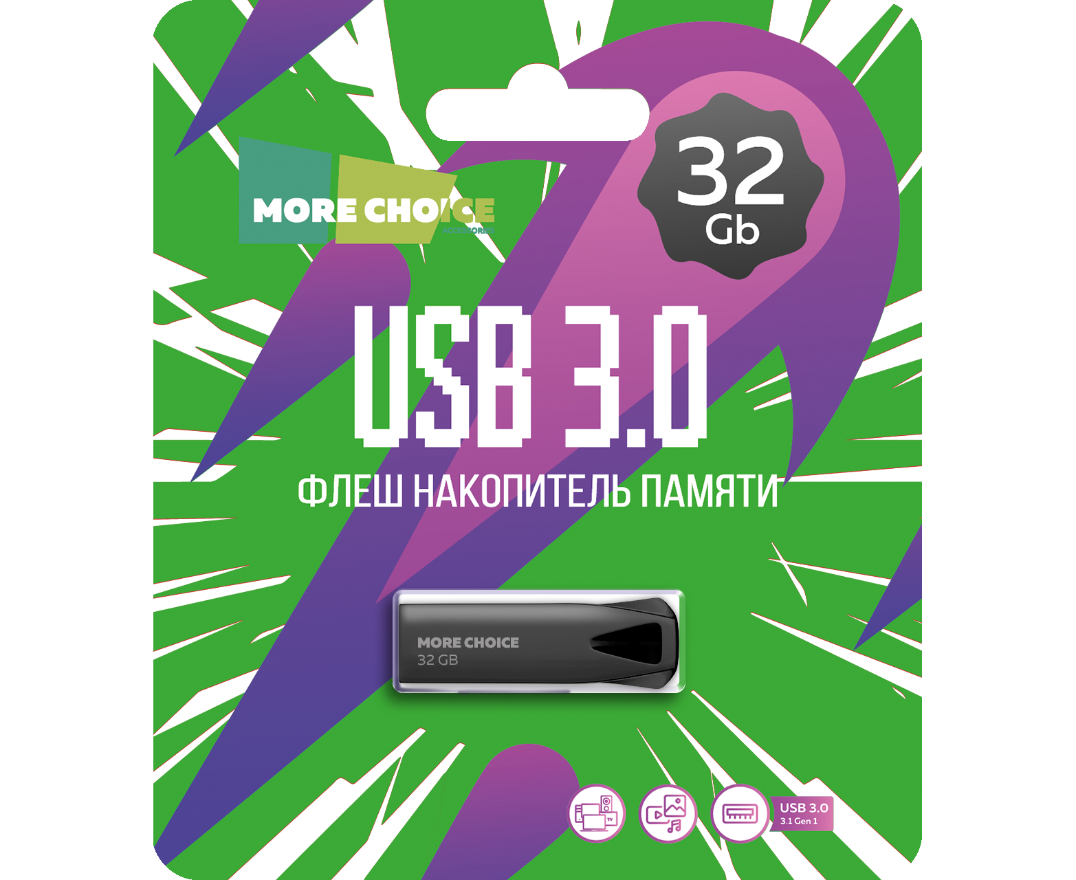 Флеш накопитель памяти USB 32GB 3.0 More Choice MF32m металл (Black)