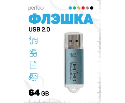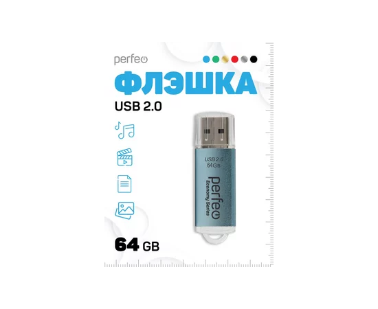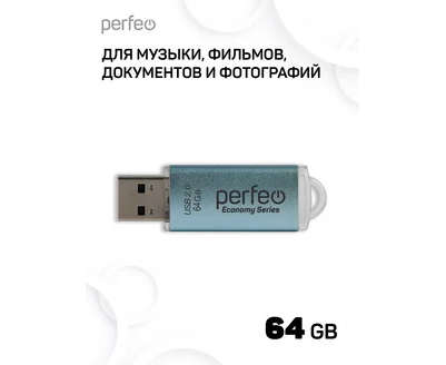 Флешка Perfeo 64GB E03 Голубая economy series