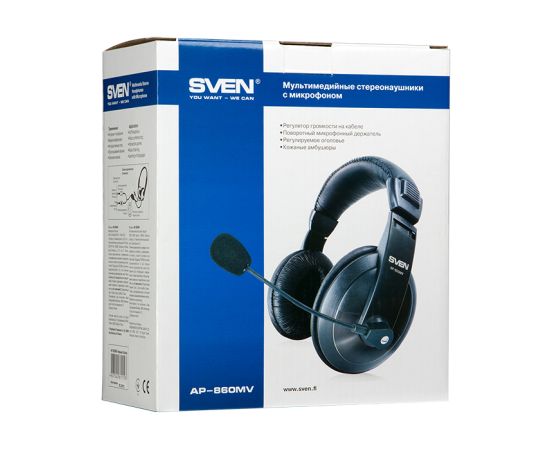 Наушники полноразмерные SVEN AP-860MV с микрофоном, черный, 2 x mini-jack 3.5 мм, 2 м