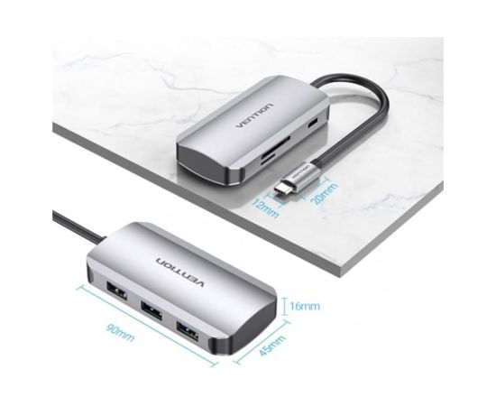 Хаб Vention TOJHB USB-C to HDMI/USB 3.0x3/SD/TF/PD Docking Station Gray 0.15M Aluminum Alloy Type