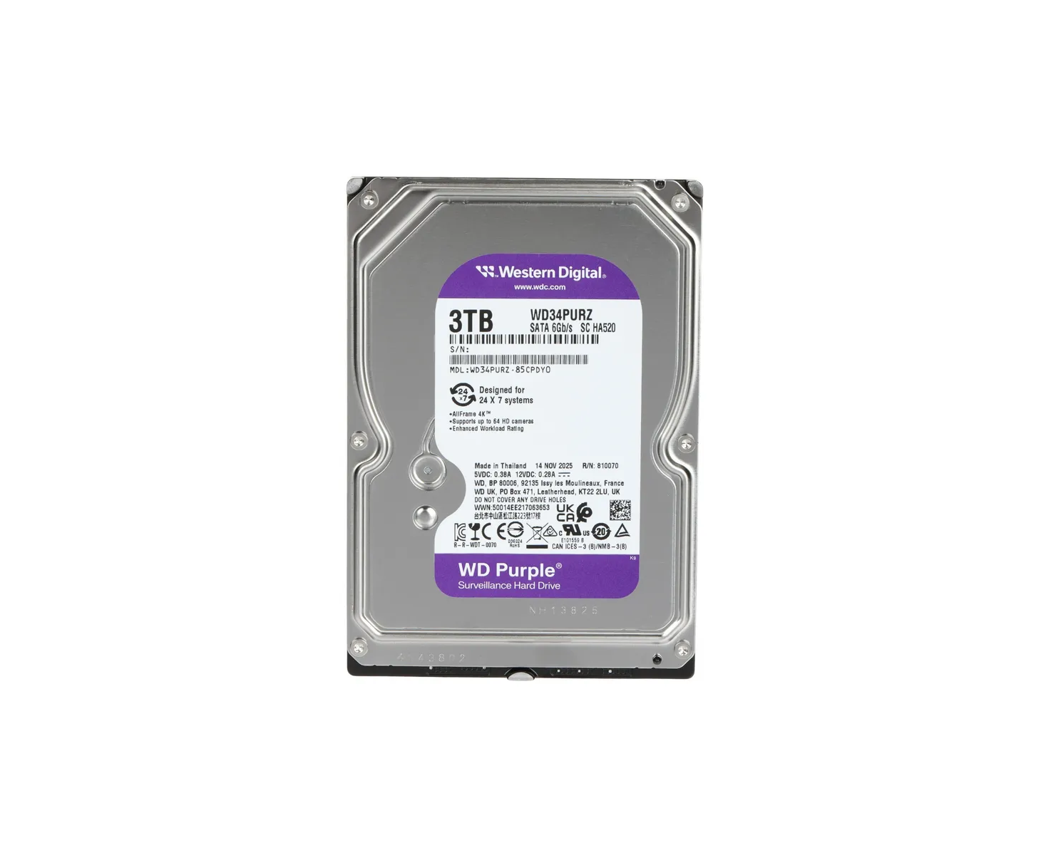 HDD Western Digital Purple WD34PURZ 3TB 3.5", SATA 6Gb / s (SATA-III), CMR