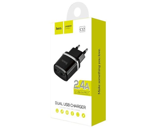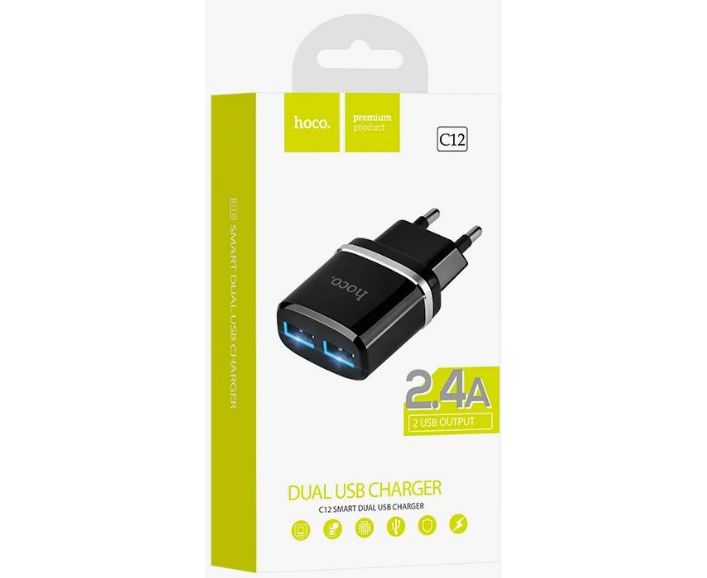 Сетевое зарядное устройство HOCO C12/ СЗУ/ 2 USB/ Выход: 12W/ Черный