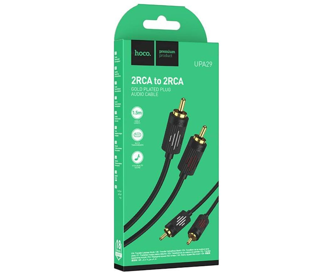 Аудио кабель HOCO UPA29/ AUX 2xRCA - 2xRCA/ 1.5m/ позолоченные контакты/ Нейлон/ Черный