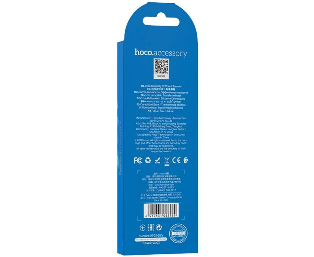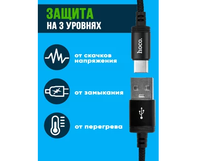 Кабель HOCO X14/ USB Type-C/ 2m/ 1.7A/ Нейлон/ Черный