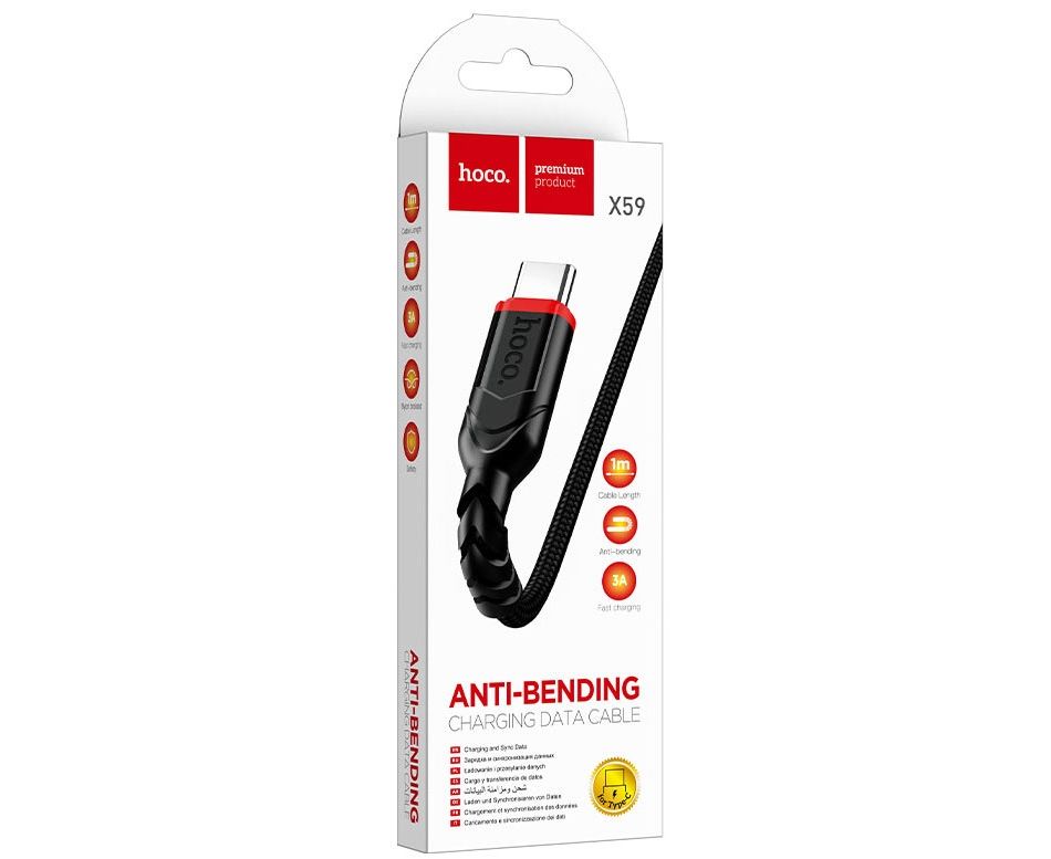 Кабель HOCO X59/ USB Type-C/ 1m/ 2.4A/ Нейлон/ Черный
