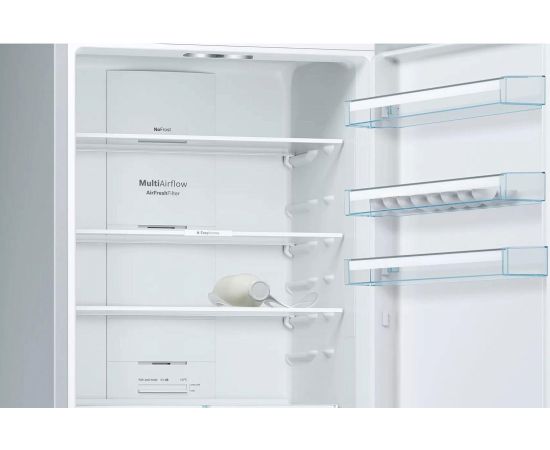 Двухкамерный холодильник Bosch KGN49XL30U выполнен в цвете «нержавеющая сталь» с цифровым дисплеем, на котором отображается температура и сигналы об ошибках. Антибактериальный фильтр AirFresh обладает антибактериальными и антимикробными свойствами, устраняет неприятные запахи и бактерии внутри прибора. Режим Эко предназначен для снижения расхода электроэнергии.