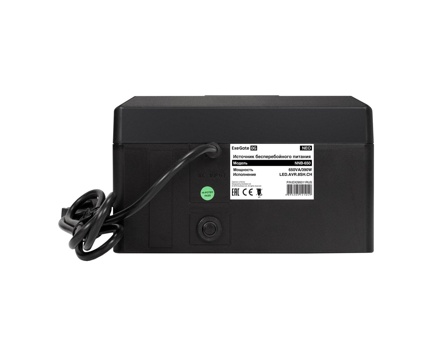 ИБП ExeGate Neo NNB-650.LED.AVR.8SH.CH (EX295011RUS) 650VA/390W, LED, AVR, 8*Schuko, 4*USB-порта для зарядки, Black
