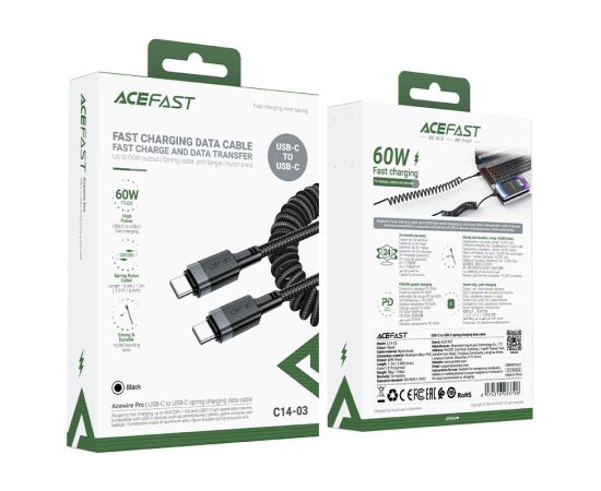 Дата-кабель ACEFAST AF-C14-03-BK USB-C To USB-C Spring Charging Data Cable Black