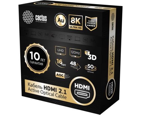 Кабель аудио-видео Cactus CS-HDMI-AOC-2.1-50 HDMI(m)/HDMI(m) 50м позолоч.конт. черный