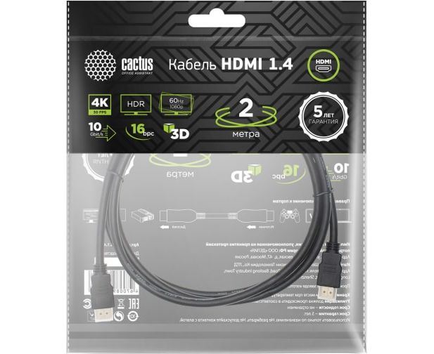 Кабель аудио-видео Cactus CS-HDMI.1.4-2 HDMI (m)/HDMI (m) 2м черный