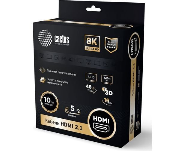 Кабель аудио-видео Cactus CS-HDMI.2.1-5 HDMI (m)/HDMI (m) 5м серебристый