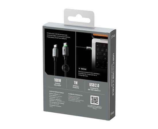 Кабель Breaking Deep USB-C - USB-C, 100W, 5.0A, LED индикатор, 1м (Графит)