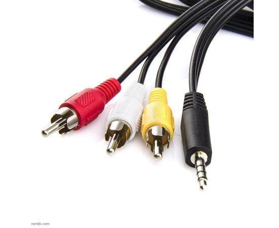 Кабель для подключения медиаплеера к телевизору, с одной стороны коннектор mini jack 3.5 мм, c другой RCA (тюльпан), кабель состоит из 6 проводников из монолитной медной проволоки толщиной 0,255 мм, внешняя оболочка из ПИХ