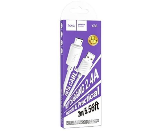 Кабель HOCO X88/ USB Micro/ 2m/ 2,4A/ Белый