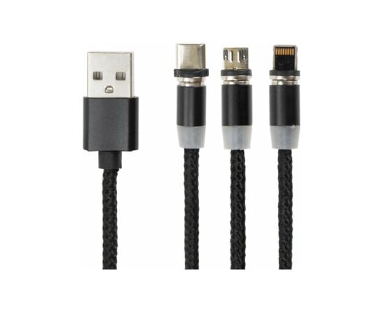 Кабель магнитный SONNEN 513561 для зарядки USB 2.0-Micro USB/Type-C/Ligtning, 1м, черный