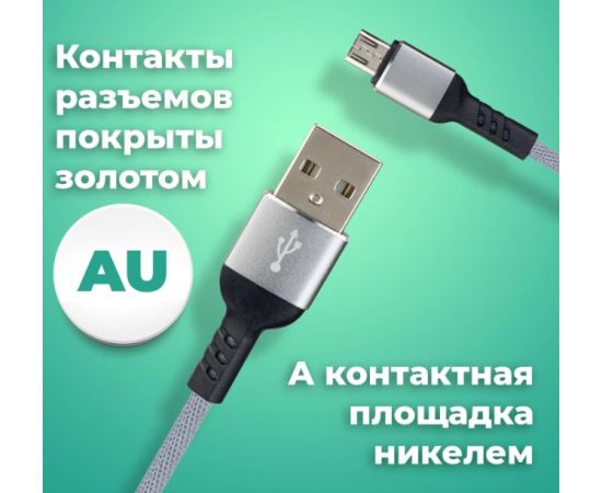 Кабель PERFEO U4809 USB2.0 A вилка - Micro USB вилка, серый, длина 2м, бокс