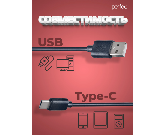 Кабель Type-C с разъемами USB 2.0 A - USB Type-C, предназначен для зарядки смартфонов, телефонов, портативной акустики и многих других устройств с подходящими разъемами. Высокая скорость передачи данных и максимальный ток в 2А позволяют быстро передавать данные и заряжать смартфон. Контакты разъемов покрыты золотом, а контактная площадка - никелем. Молдинги и кабель в черной эластичной оболочке. Кабель питания и зарядки на 100% соответствует высоким требованиям мировых производителей, и вы можете быть уверены за безопасность устройства. Шнур для зарядки смартфона с разъемом Type-C подойдет для телефонов, планшетов на базе андроид, для внешнего аккумулятора, пауэр банка, ноутбука, макбука. Зарядный юсб шнур выполнен из медных проводков. При изготовлении применяются износостойкие материалы, обеспечивающие гибкость и устойчивость к длительным деформациям без повреждений. Удобный в использовании в любом месте, подходит для заряда девайсов с адаптером питания USB от розетки, компьютера, в автомобиле.