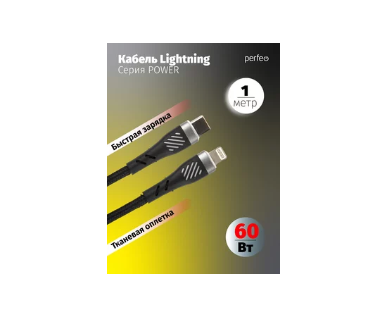 Кабель PERFEO USB C вилка - Lightning вилка, 60W, черный, длина 1 м., POWER (C1005)