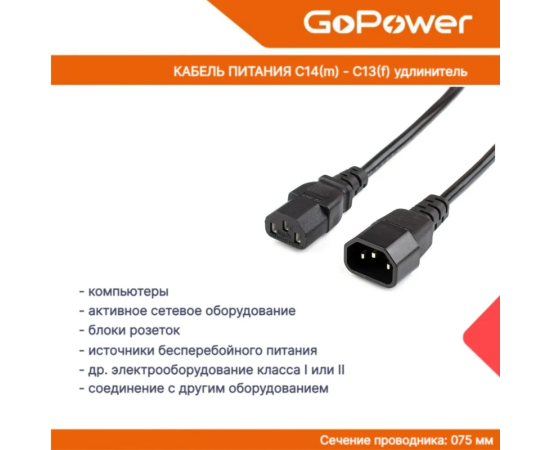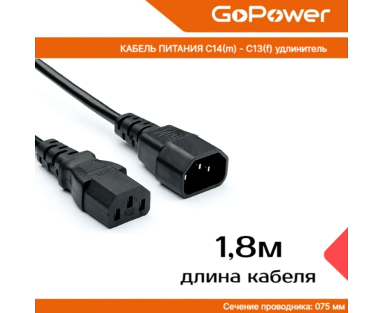 Кабель питания GoPower 00-00024537 C14 (m)-C13 (f) 1.8м ПВХ удлинитель черный 1/10/100