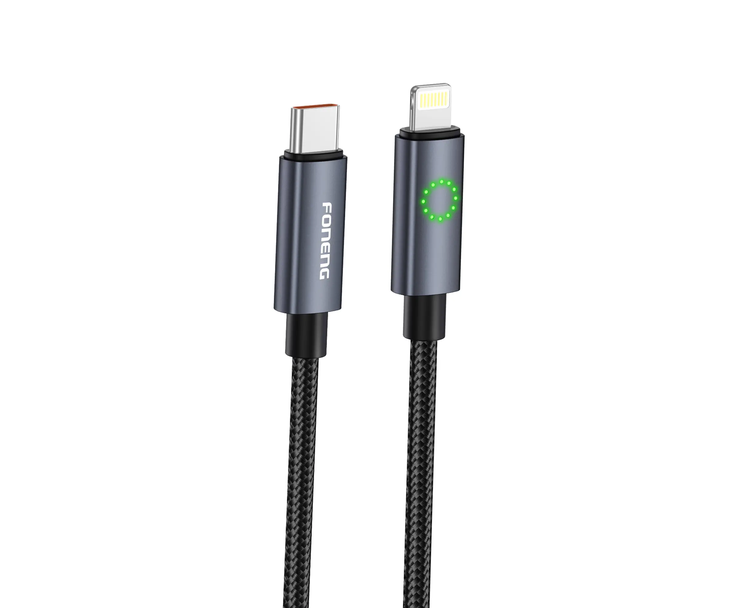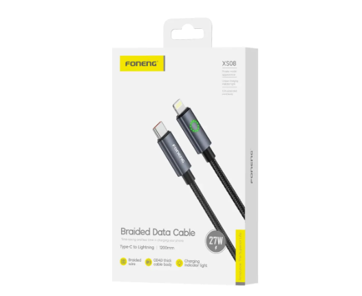 Кабель Type-C to Lightning Foneng XS08 1.2M, 60W, нейлон (Black)