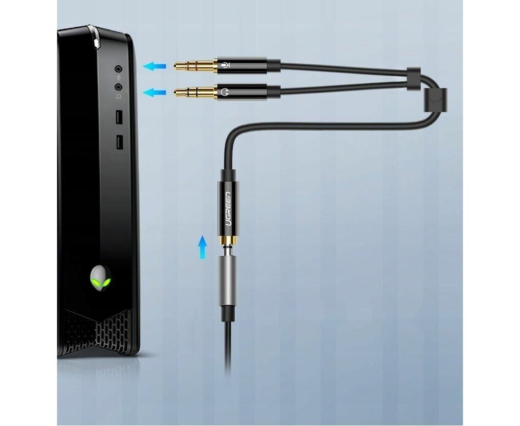 Кабель UGREEN AV140 20899 Dual 3.5mm Male To 3.5mm Female Audio Cable Aluminum Case Black