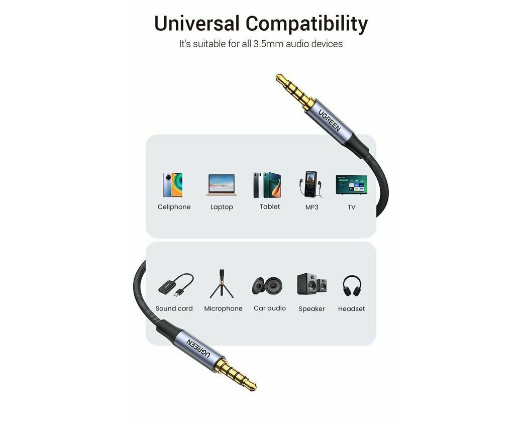 Кабель UGREEN AV183 (20785) 3.5mm Male to Male 4-Pole Microphone Audio Cable 3m Black