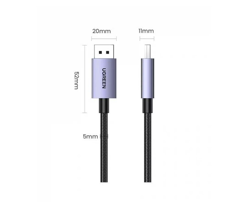 Кабель UGREEN DP118 (15384) Display Port Male To Male 16K Cable, 2м серый