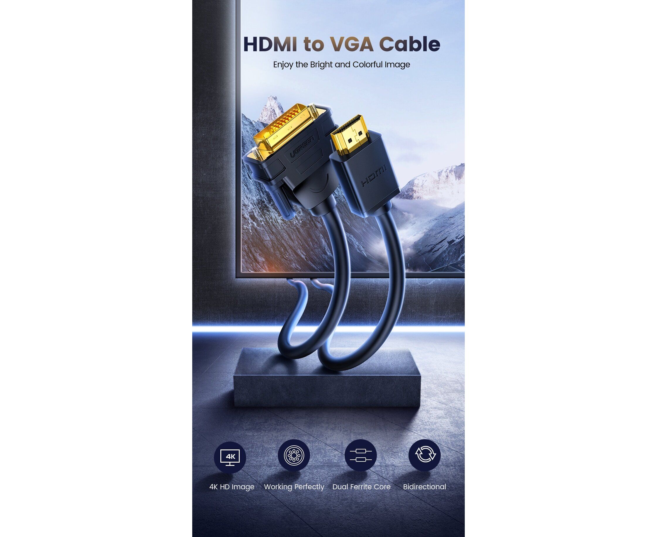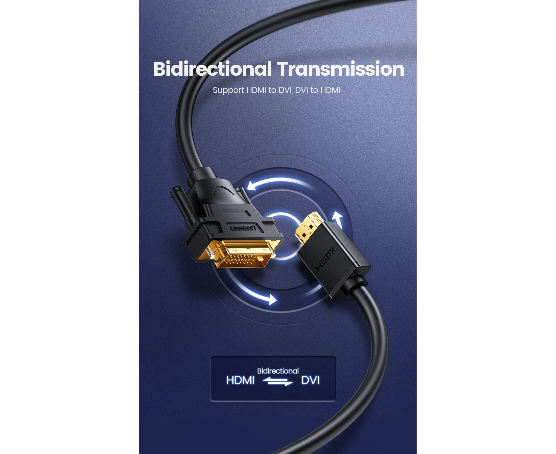 Кабель UGREEN HD106 30116 HDMI Male To DVI24+1 Round Cable 1m Black