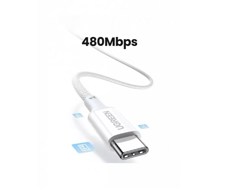 Кабель UGREEN L502 (35220) USB-C to USB-C PD Fast Charging Braided Cable 5A Max 1m White
