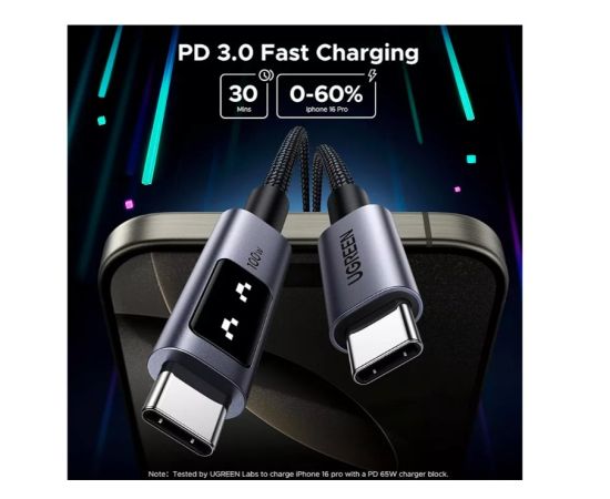 Кабель UGREEN L509 (35501) UNO Type-C 2.0 Male To Type-C 2.0 Male Robot 5A Data Cable 1m Black/Gray