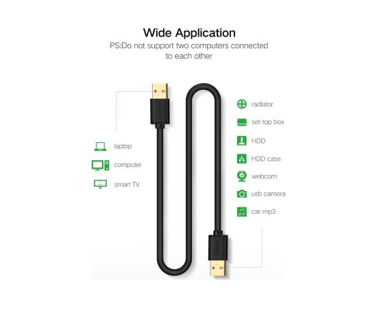 Кабель UGREEN US102 10309 USB 2.0 A Male to A Male Cable 1m Black
