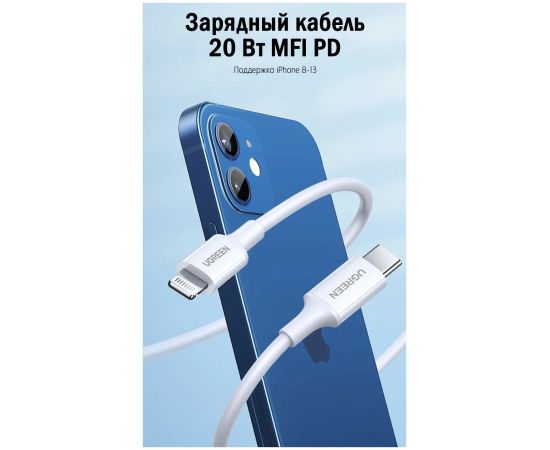 Кабель UGREEN US171 60749 USB-C to Lightning Cable M/M Nickel Plating ABS Shell 2m White