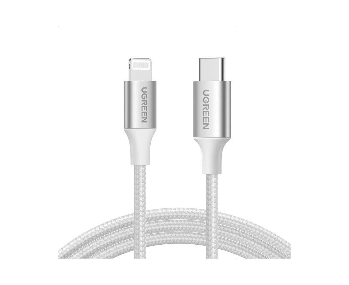 Кабель UGREEN US304 70523 USB-C to Lightning M/M Cable Aluminum Shell Braided 1m Silver