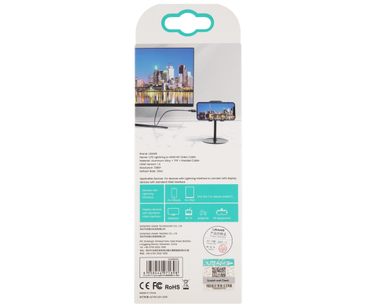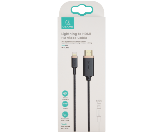 Кабель USAMS US-SJ509 U70 HDMI - Lightning, версия 1.4, 2м, нейлоновая оплетка, черный (SJ509HD01)