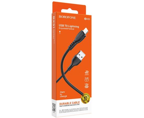 Кабель USB - Apple lightning Borofone BX51 100см 2,4A (black) (133808)