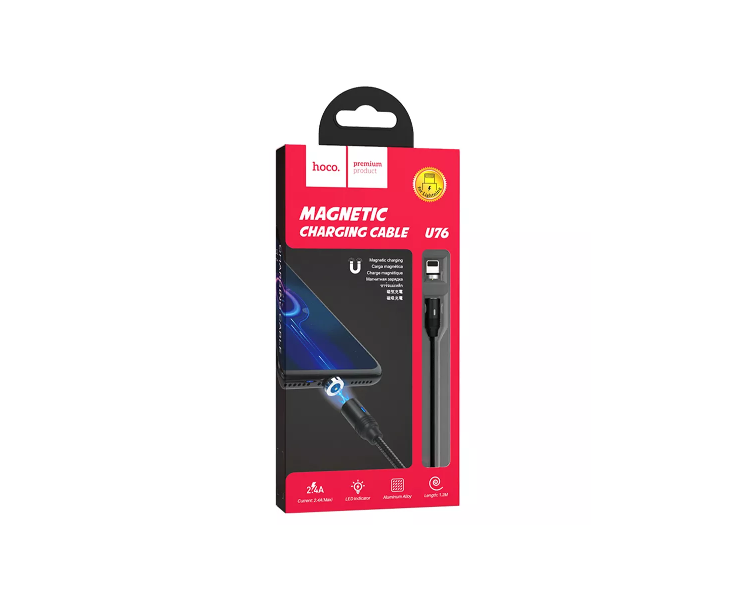 Кабель USB HOCO U76 Fresh magnetic USB-Lightning магнитный, 2А, 1.2м черный