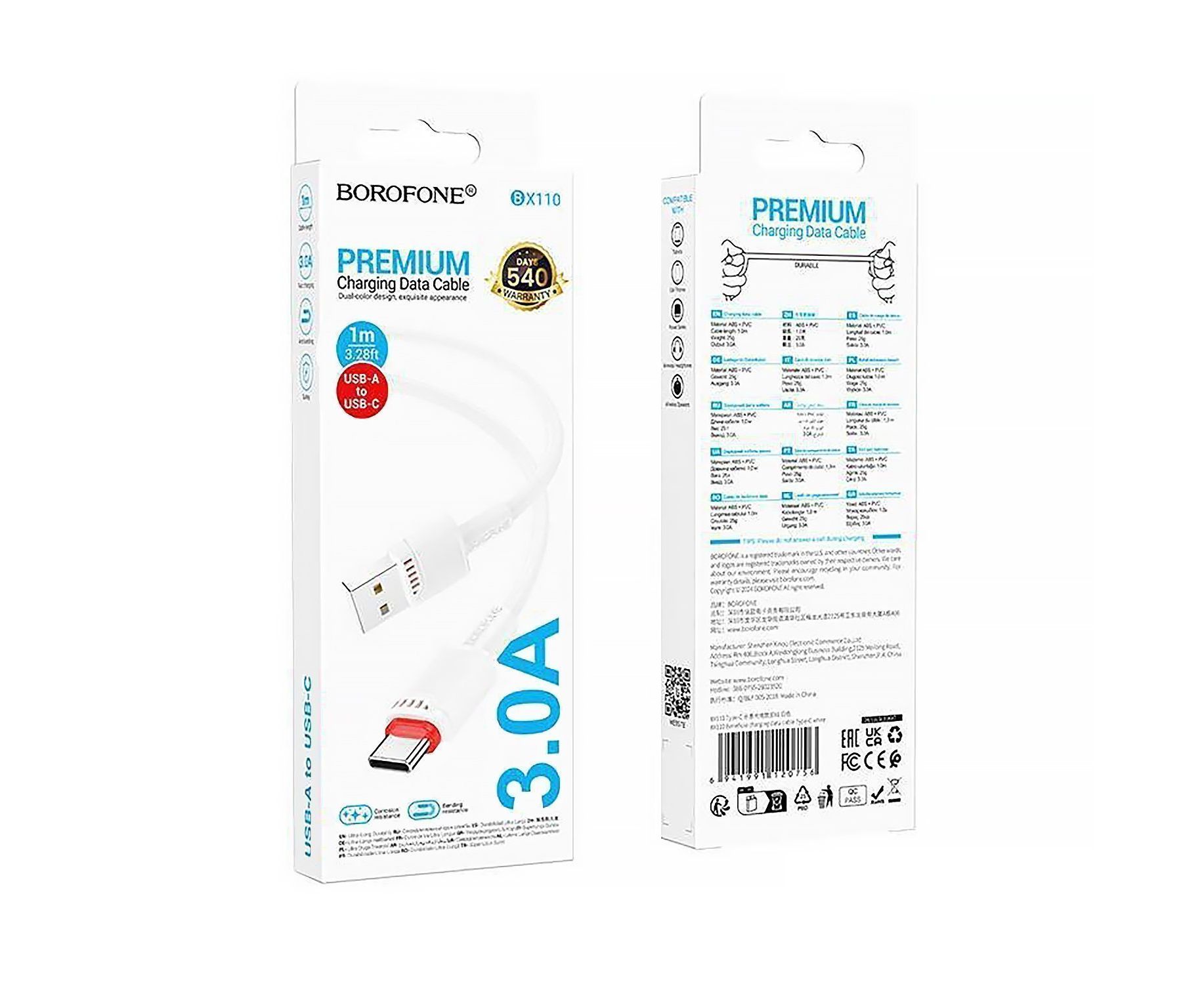 Кабель USB - Type-C Borofone BX110 Beneficio 18W 100см 3A (white) (240143)