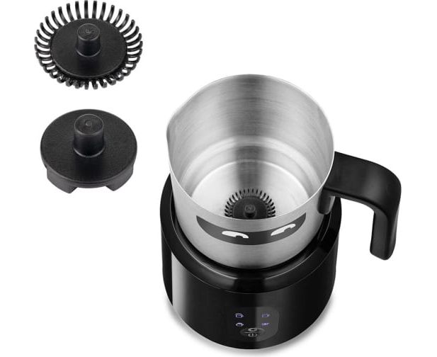 Насадка для смешивания используется для перемешивания молока во время его подогрева, насадка для вспенивания – для получения молочной пенки. Сам питчер имеет антипригарное покрытие и прозрачную крышку для наблюдения для процессом.