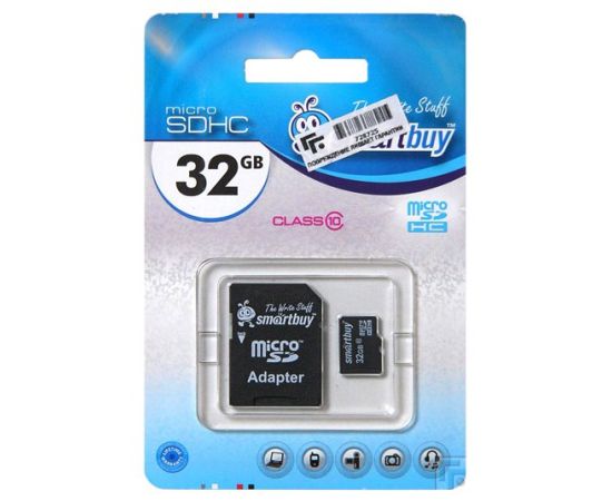 Карта флэш-памяти MicroSD 32 Гб Smart Buy +SD адаптер (class 10)
