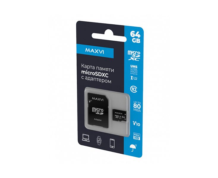 Карта памяти Maxvi (MSD64GBC10V10) microSDXC 64GB, class 10, UHS-I (1), V10