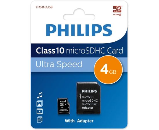 Карта памяти PHILIPS FM04MA45B/97 4GB microSDHC Class 10 (SD адаптер)