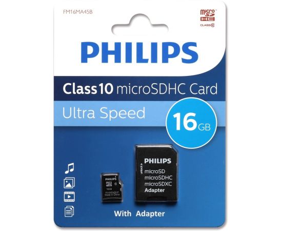 Карта памяти PHILIPS FM16MA45B/97 16GB microSDHC Class 10 (SD адаптер)