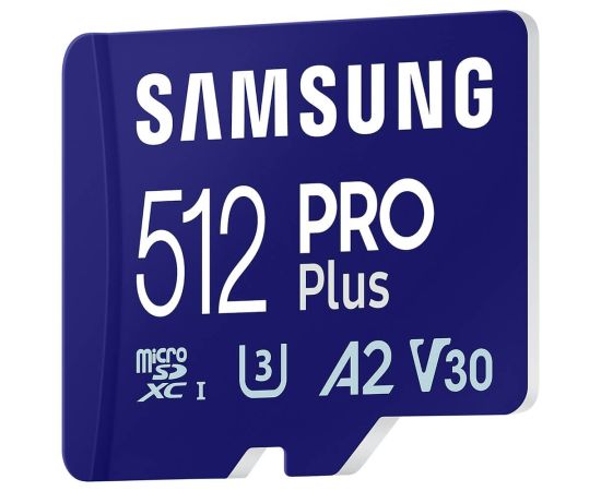 Карта памяти Samsung Pro Plus MB-MD512SA/KR microSDXC 512GB Class 10, A2, V30, UHS-I (U3), W 130 МБ/с, R 180 МБ/с, адаптер на SD